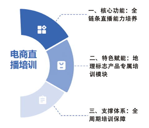 电商直播培训作为“数商兴农”的关键引擎,聚焦地理标志农产品品牌传播与市场拓展,通过“理论+实战+资源”三位一体模式,构建培训 -实践 -创业全链路赋能体系。
